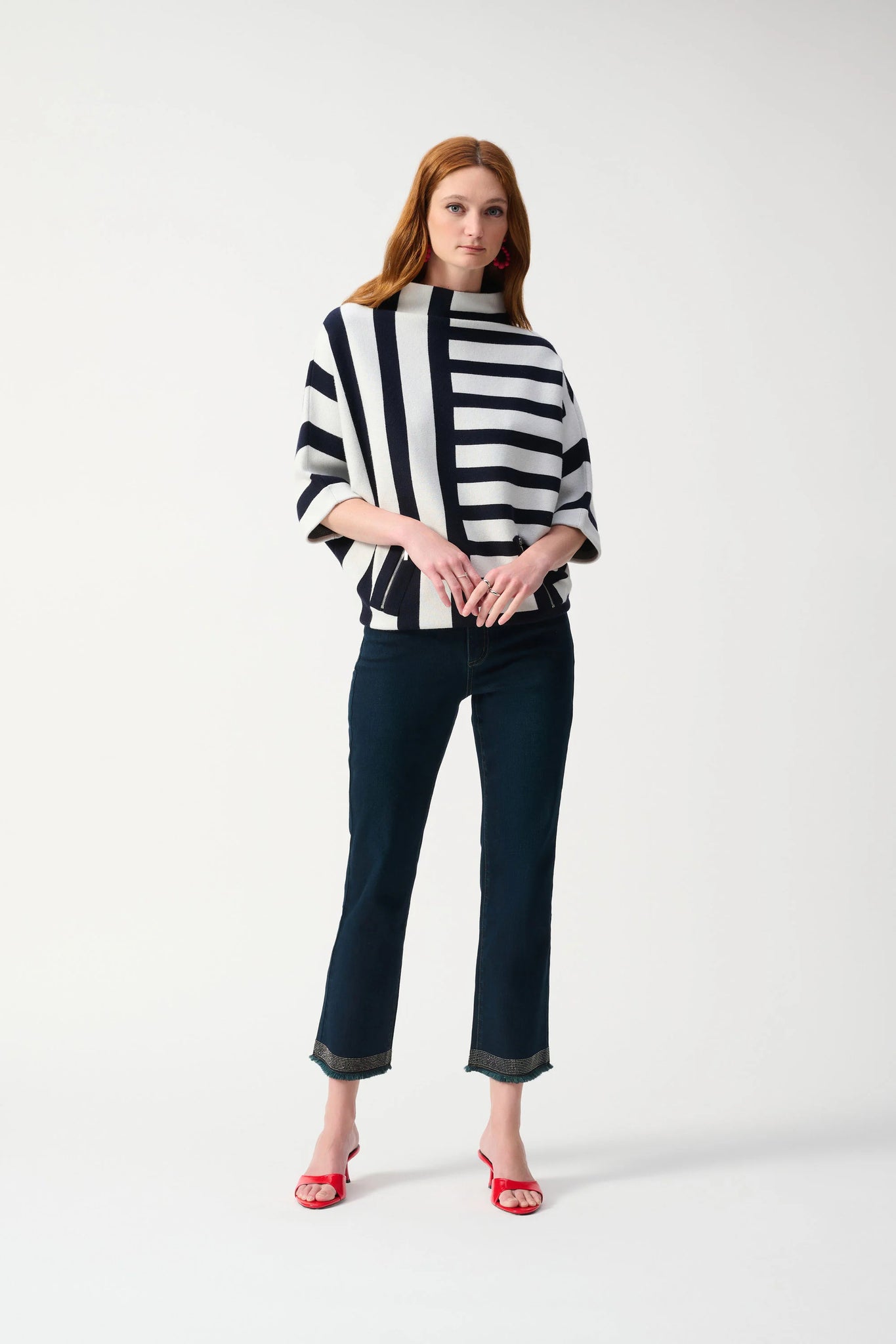These classic straight leg denim pants are not your ordinary jeans. Feminine detailing at the bottom leg as well as a frayed hem create an original look that will elevate any casual outfit. Not to mention the soft stretch denim that make them irresistibly comfortable.