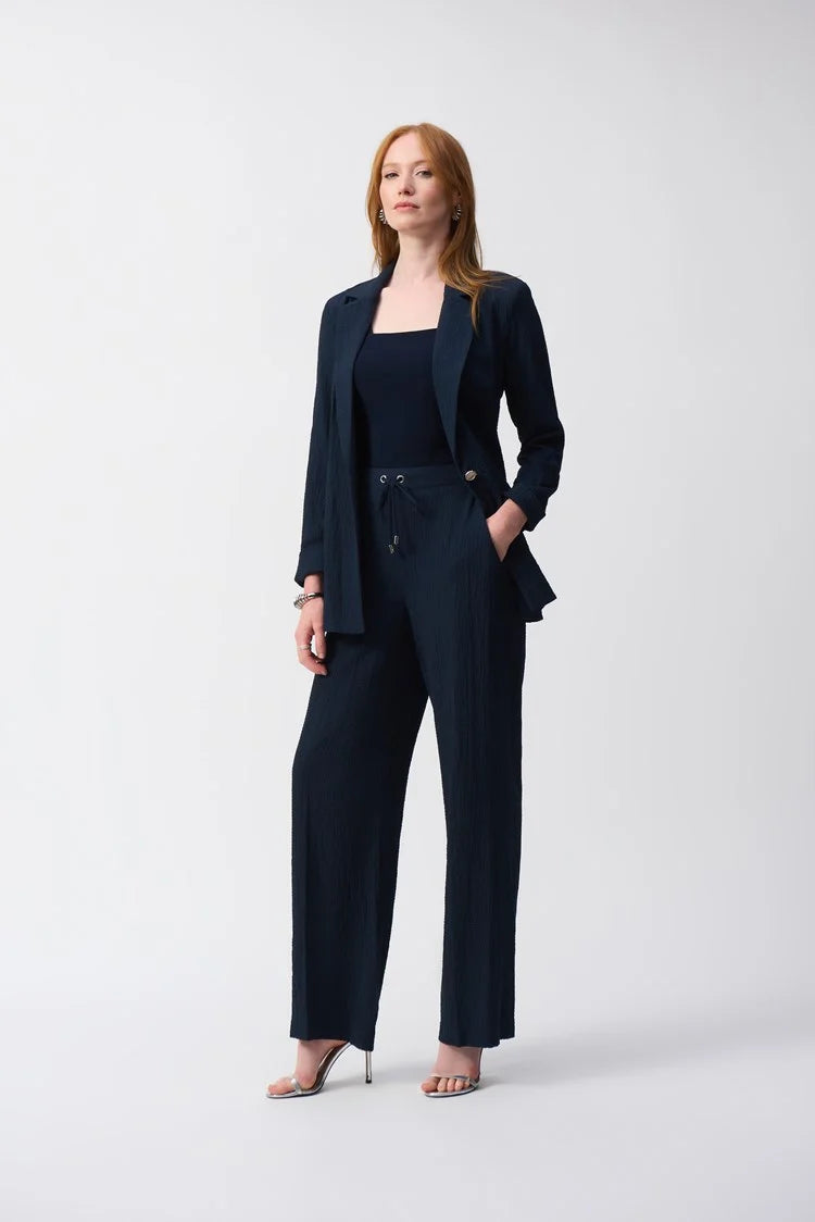 Diversify your casual wear with these pleasing pull-on pants, crafted from an airy, summer-ready seersucker fabric. A drawstring and eyelet detail at the waistband, functional pockets, and a relaxed wide leg give these pants an easygoing feel.