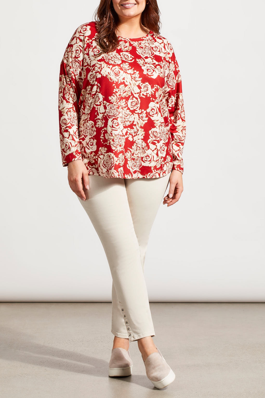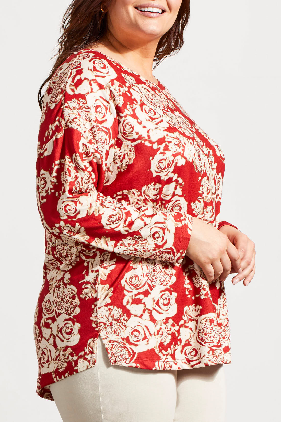 Lovely printed long sleeve crew neck tunic in velvet brushed poly and a touch of spandex.