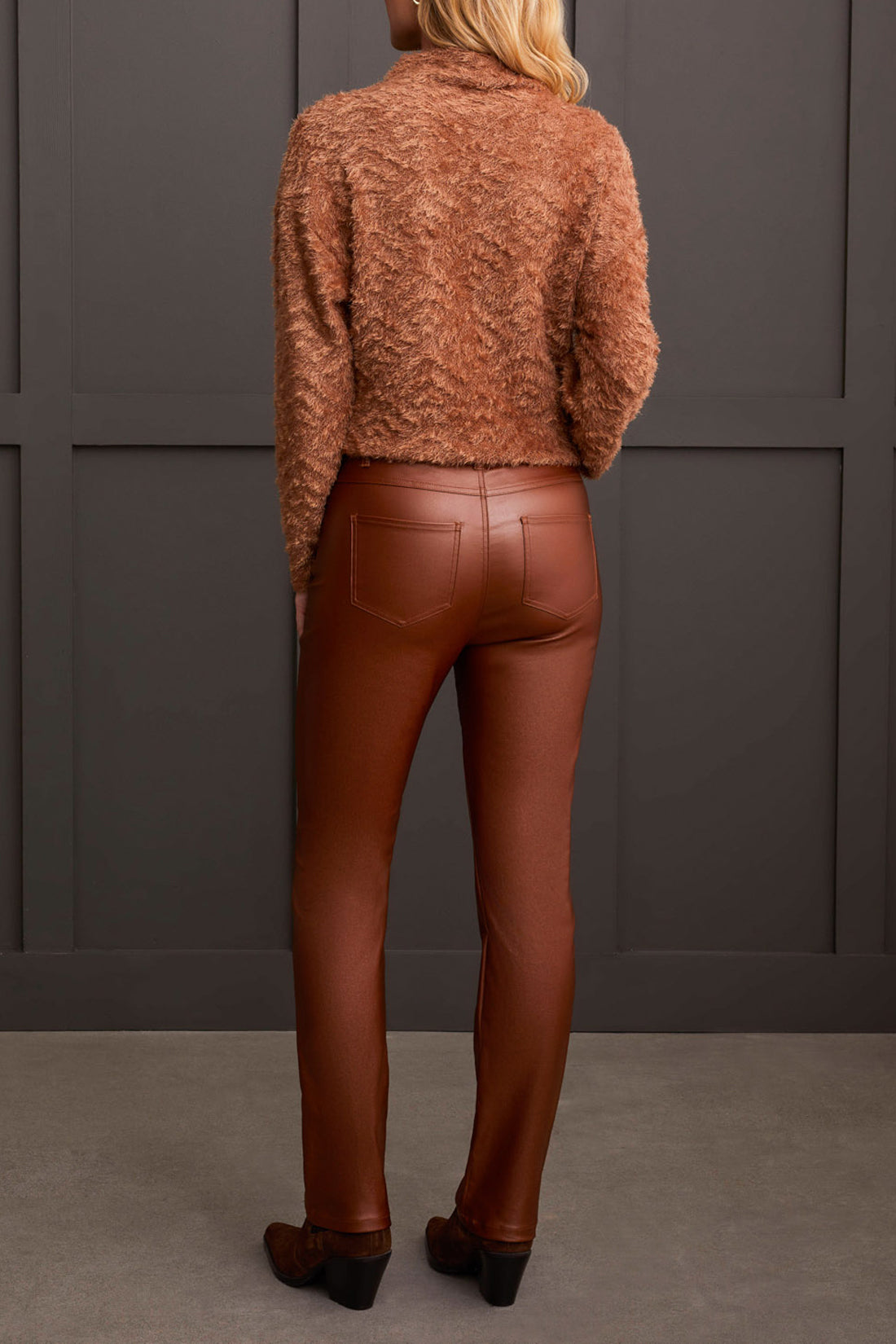 Pleather coated pant with flecks of gold in a traditional straight leg jean style.